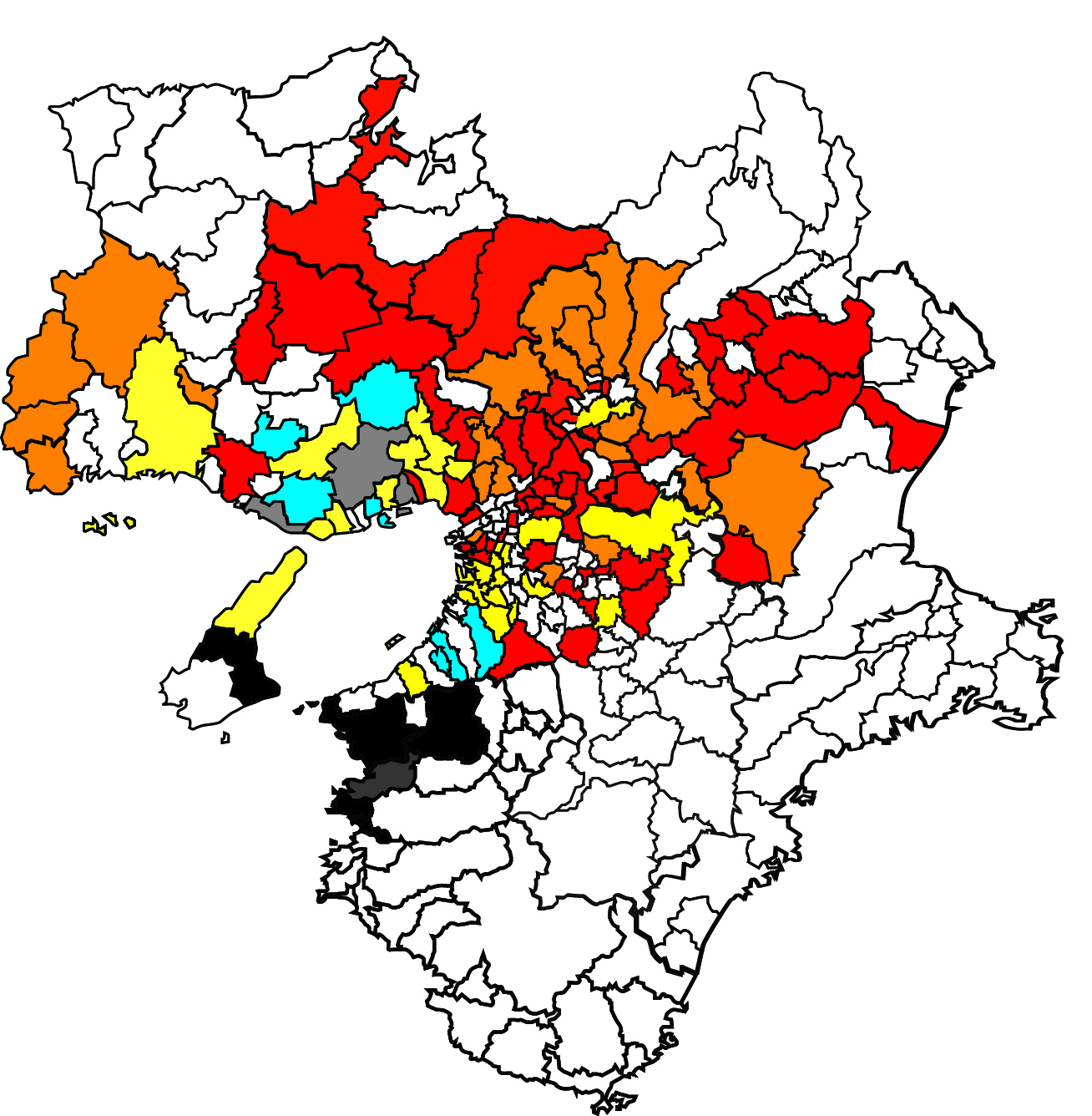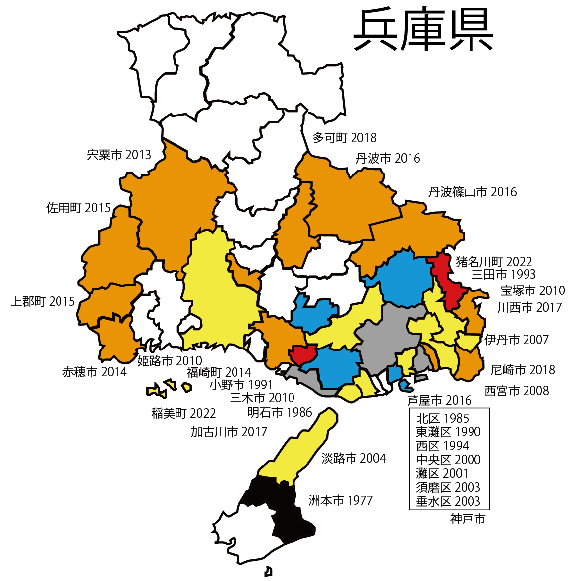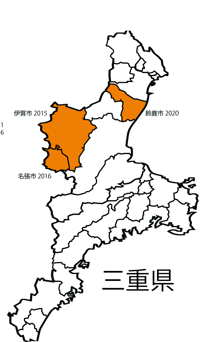 | ●近畿2府5県で、まだ記録のない市区町村の分布情報を募集 (※既に記録がある市区町村についてはご連絡不要です) ※既に記録があるところでも、より早い年の記録をご存知でしたら、お願いします。2022年秋ごろにまとめて論文化します。 ■〜1980年以前、■1981〜1990年、■1991〜2000年、■2001〜2010年、■2011〜2020年、■2021〜2022年 |