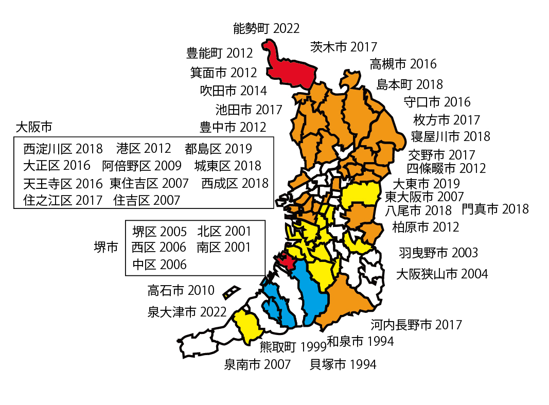 | 大阪府 | 兵庫県 | 京都府 | 滋賀県 | 三重県 | 奈良県 | 和歌山県 |