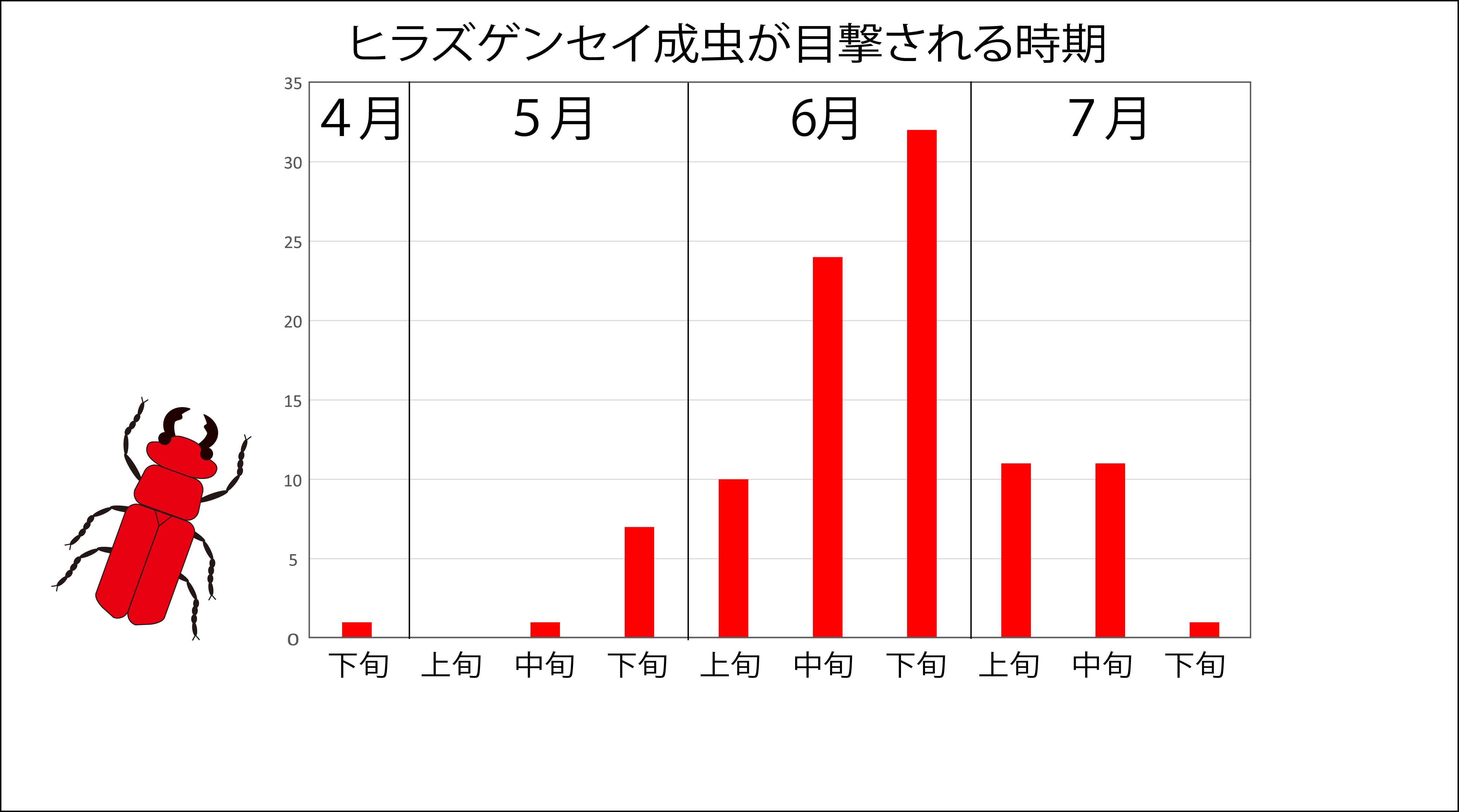 ヒラズゲンセイはツチハンミョウ科の甲虫で,真っ赤で鮮やかな色彩が特徴の大型甲虫です.近畿では和歌山県湯浅町で1976年に見つかったのが最 初で