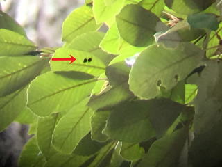 双眼鏡で一通り、葉裏をチェック。黒くて丸いものがついていたら、ミカドテントウかもしれません。いくつか集まっているようでしたら、その可能性が高いです。手の届く枝なら採集して標本にするといいです。高い枝だと、他のテントウムシの感覚からすれば、網で揺すれば簡単に落ちそうなもんですが、葉裏にピタっとくっついて、絶対(!)に落ちてきません。ミカドテントウをモチーフにした受験お守りを作ろうかと思っているぐらいです。